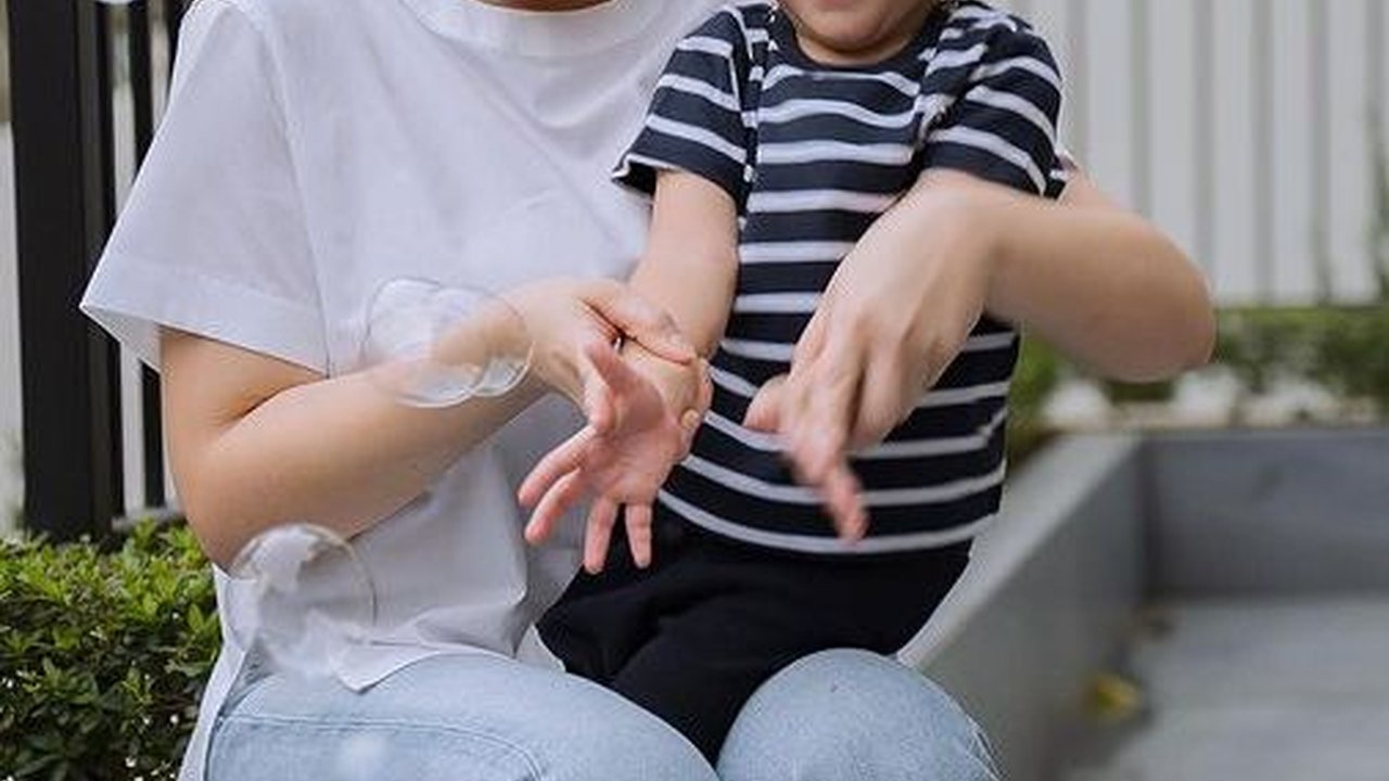 Nagita Slavina tampak memperhatikan Rayyanza yang sedang main bubble. Rayyanza tampak begitu senang ditemani sang mama. Di sela kesibukannya, Nagita Slavina selalu meluangkan waktu untuk bermain bersama anak-anaknya.