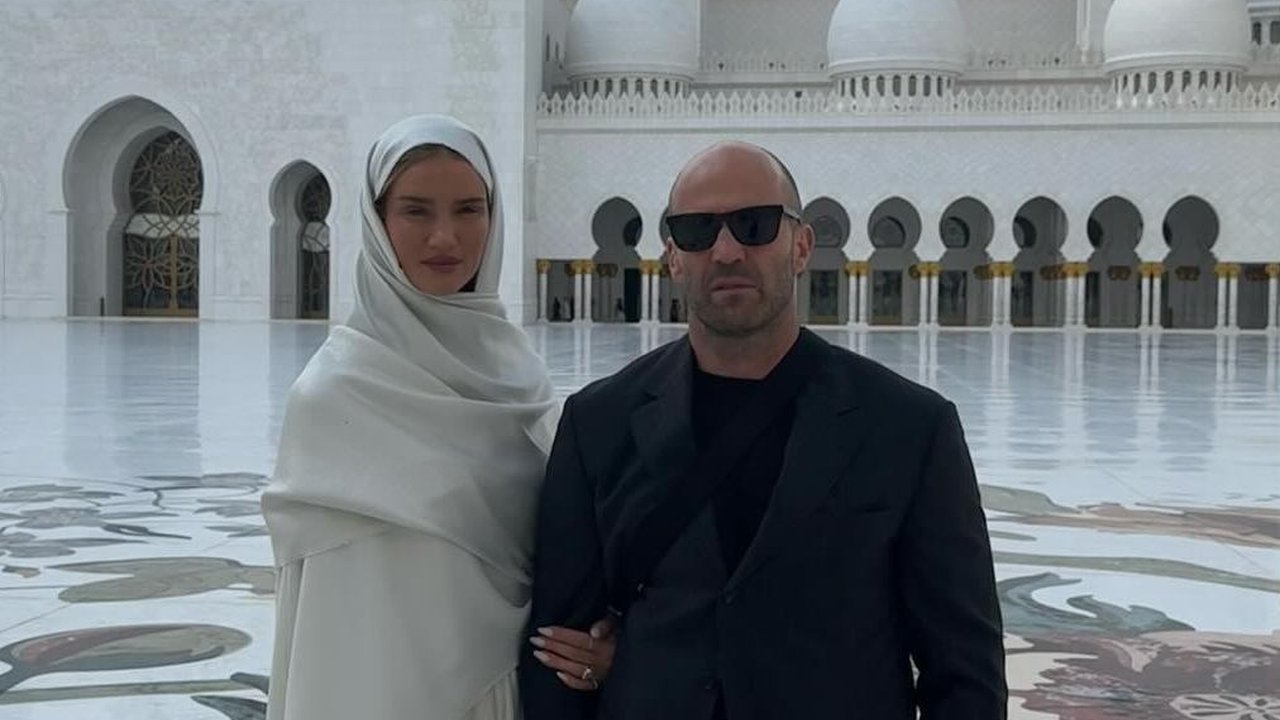 Tak hanya Jason Statham, Rosie Huntington juga ikut mengabadikan foto di Masjid Sheikh Zayed. Saat berada di area masjid, Rosie tampil mengenakan hijab putih. Rosie berfoto dengan latar kubah masjid. Penampilannya langsung mencuri perhatian.