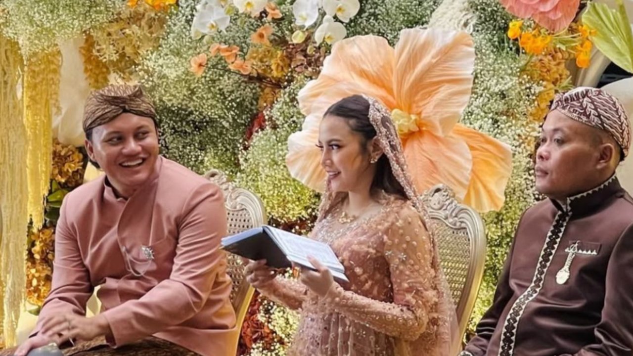 Rizky Febian pun tampil serasi dengan busana bernuansa pink nude, sehingga menciptakan visual yang harmonis sebagai pasangan. Kebahagiaan pasangan ini terlihat jelas dari senyum ceria yang mereka tunjukkan.
