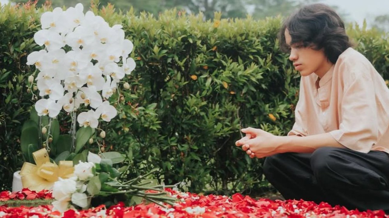 Dalam gambar yang dibagikan, Noah terlihat mengunjungi makam Ashraf Sinclair yang dikelilingi oleh kelopak bunga berwarna merah dan putih. Ia duduk dalam suasana tenang, dengan kepala menunduk seolah sedang berbicara dengan ayahnya.