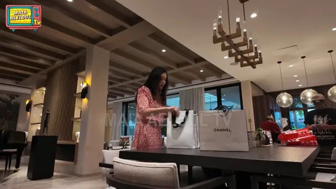 Maia tampak sibuk saat mendata isi shopping bag yang berisi lingerie berwarna merah muda. Lingerie tersebut sangat lembut dan dibungkus dengan sangat rapi, menunjukkan kualitasnya yang tinggi. Ia menuturkan bahwa lingerie ini dirilis bersamaan dengan mukena. Selain itu, Maia juga menjelaskan bahwa pembelian lingerie ini dilakukan secara mendadak karena pernikahan yang semakin dekat. Di dalam tas tersebut, terdapat tas jinjing hitam dari Celine yang memiliki desain yang sangat eksklusif serta dihiasi dengan motif emas.