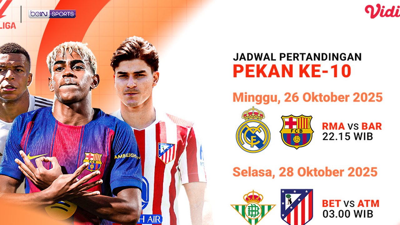 Selain El Clasico, sorotan juga tertuju pada laga Real Betis vs Atletico Madrid yang akan digelar pada Selasa, 28 Oktober 2025 pukul 03.00 WIB. Atletico yang dikenal solid di lini belakang akan mencoba mencuri poin dari Betis yang tampil berani di kandang sendiri. Pekan ke-10 ini jelas akan menjadi ujian besar bagi tim-tim papan atas untuk menjaga posisi di jalur juara.