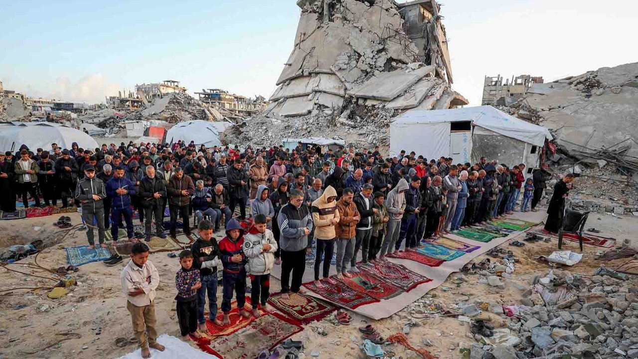 Warga Palestina di Gaza merayakan Idulfitri di bawah ancaman bom Israel. Ketika salat Id berlangsung pada Minggu (30/3), helikopter penjajah Israel terbang di atas langit Gaza, seperti dilaporkan Quds News Network.
