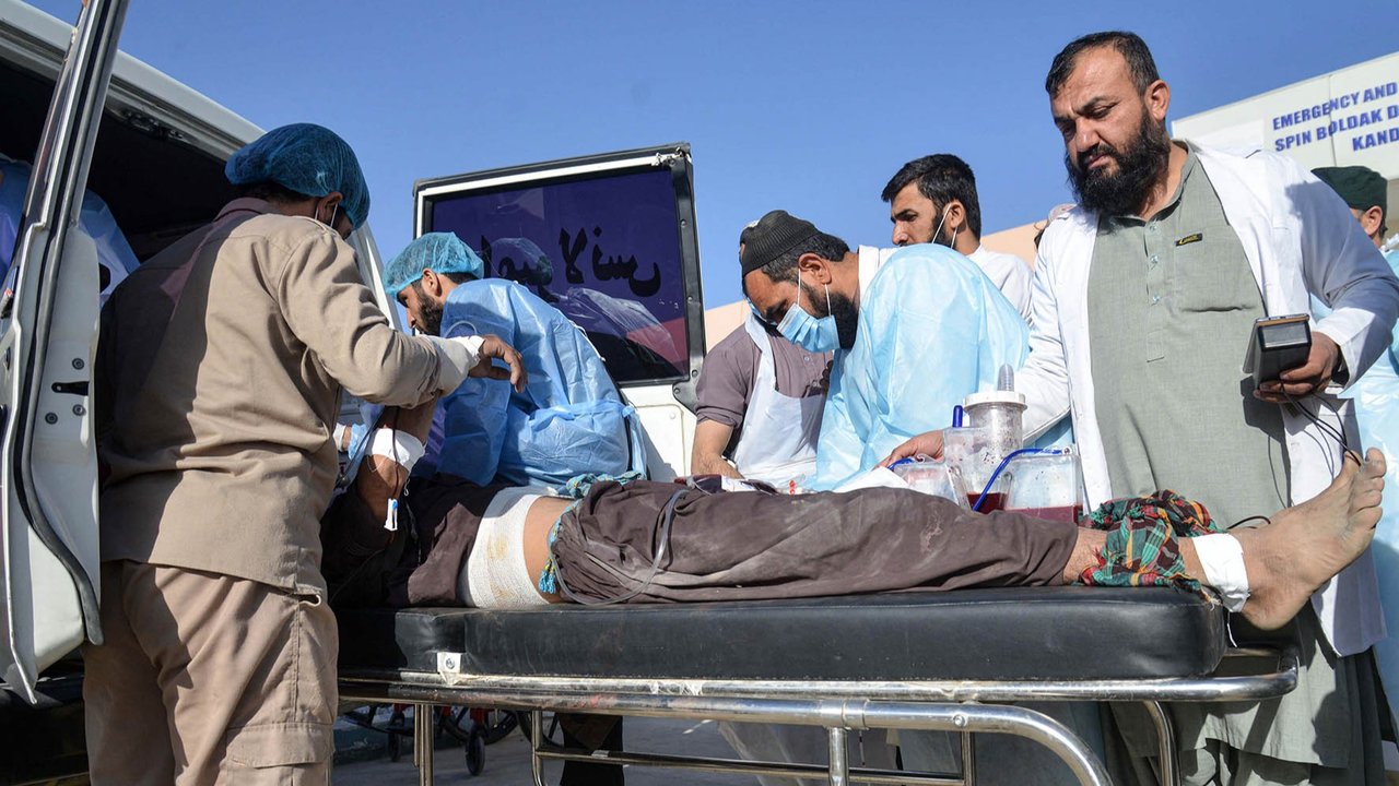 Seorang pria Afghanistan yang terluka dievakuasi ke sebuah rumah sakit di distrik Spin Boldak, Provinsi Kandahar, Rabu (15/10/2025). AFP/ Sanaullah Seiam