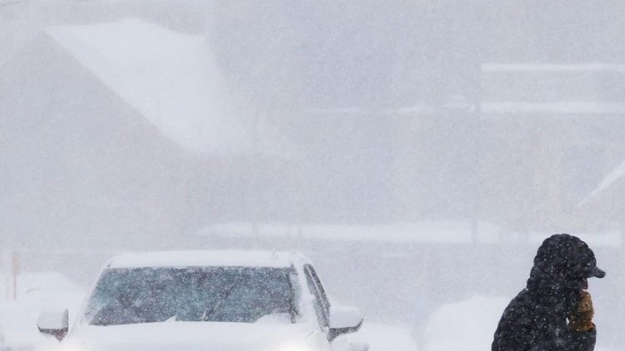 Jarak pandang pun juga menjadi terbatas akibat kabut salju yang masih menyelimuti wilayah terdampak. Beberapa wilayah juga mengalami gangguan listrik akibat pengaruh badai salju yang ekstrem itu. Foto: AFP / MARIO TAMA