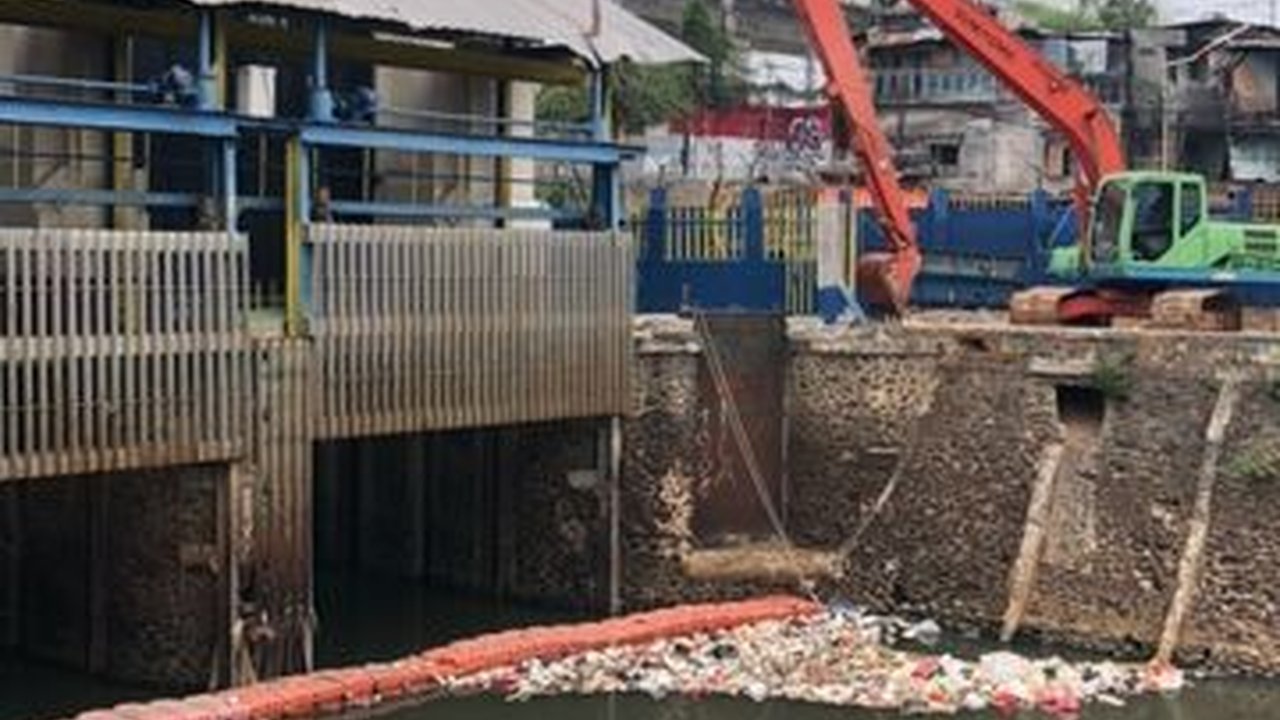 Sampah-sampah tersebut, nantinya akan dikeruk ke dalam truk yang sudah terparkir di Pintu Air Manggarai.