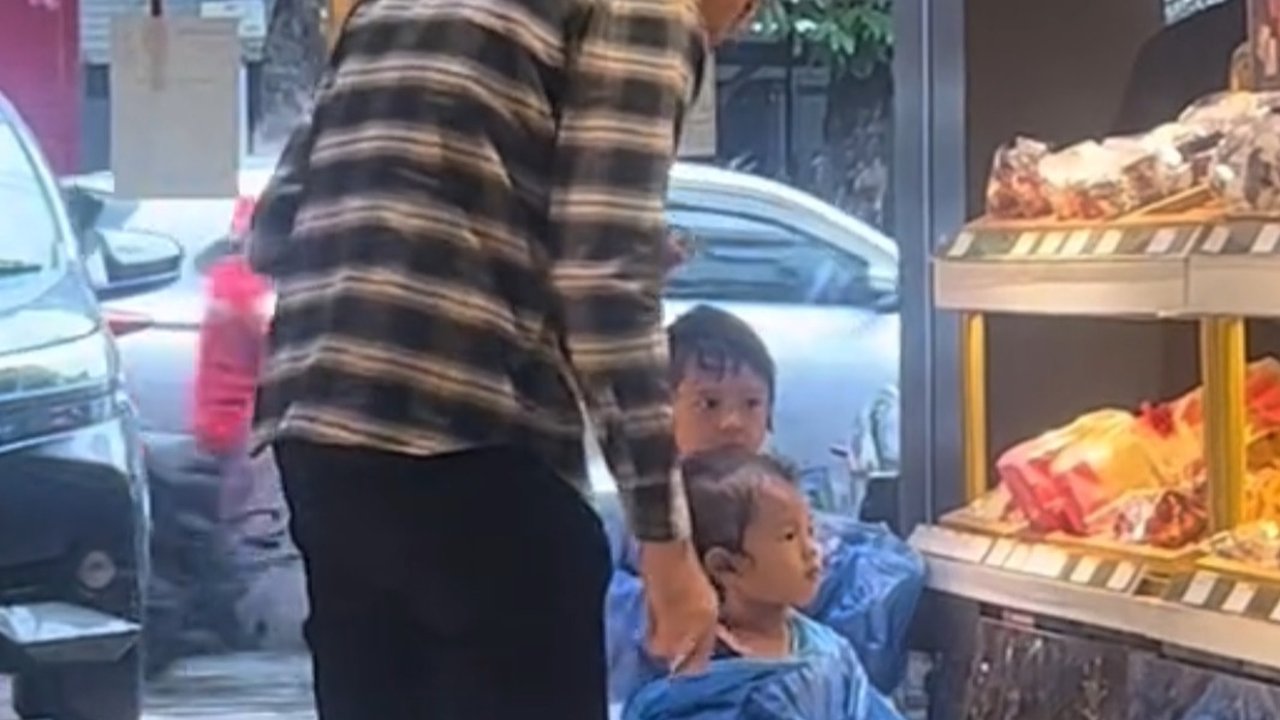 Di video berdurasi kurang lebih 1 menit, publik awalnya disuguhi pemandangan dua anak kecil berdiri di depan etalase toko roti sambil mengenakan jas hujan. Kedua anak kecil itu kemudian dihampiri seorang laki-laki berbaju kotak-kotak.