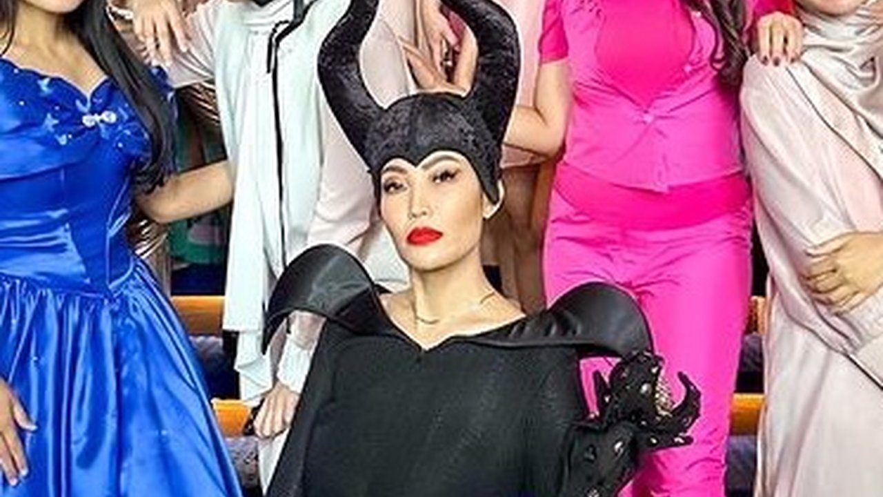 Ayu Dewi tampil maksimal dengan berubah menjadi karakter Maleficent di pertemuan Geng Cendol. Ibu tiga anak ini berkostum lengkap dengan tanduk hingga tongkat ajaib.