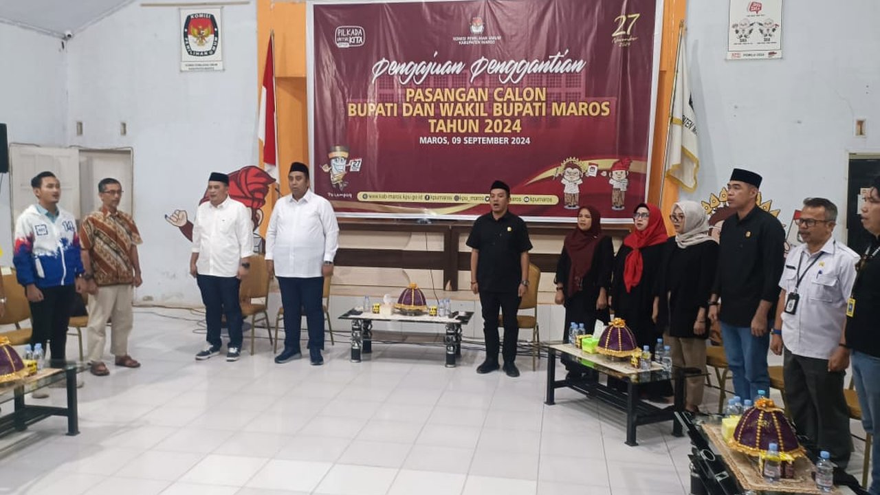 Bakal calon Bupati Maros Chaidir Syam melakukan pergantian bakal calon Wakil Bupati Maros ke Komisi Pemilihan Umum (KPU) Maros. Sebelumnya, KPU Maros memutuskan bakal Cawabup Maros Suhartina Bohari didiskualifikasi dan digantikan A Muetazim Mansyur.