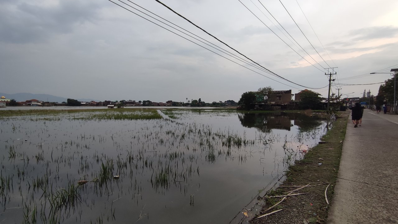 Tidak hanya merendam ruas jalan dan rumah warga, genangan air juga meluas hingga area pertanian dan menyebabkan petani mengalami gagal panen.