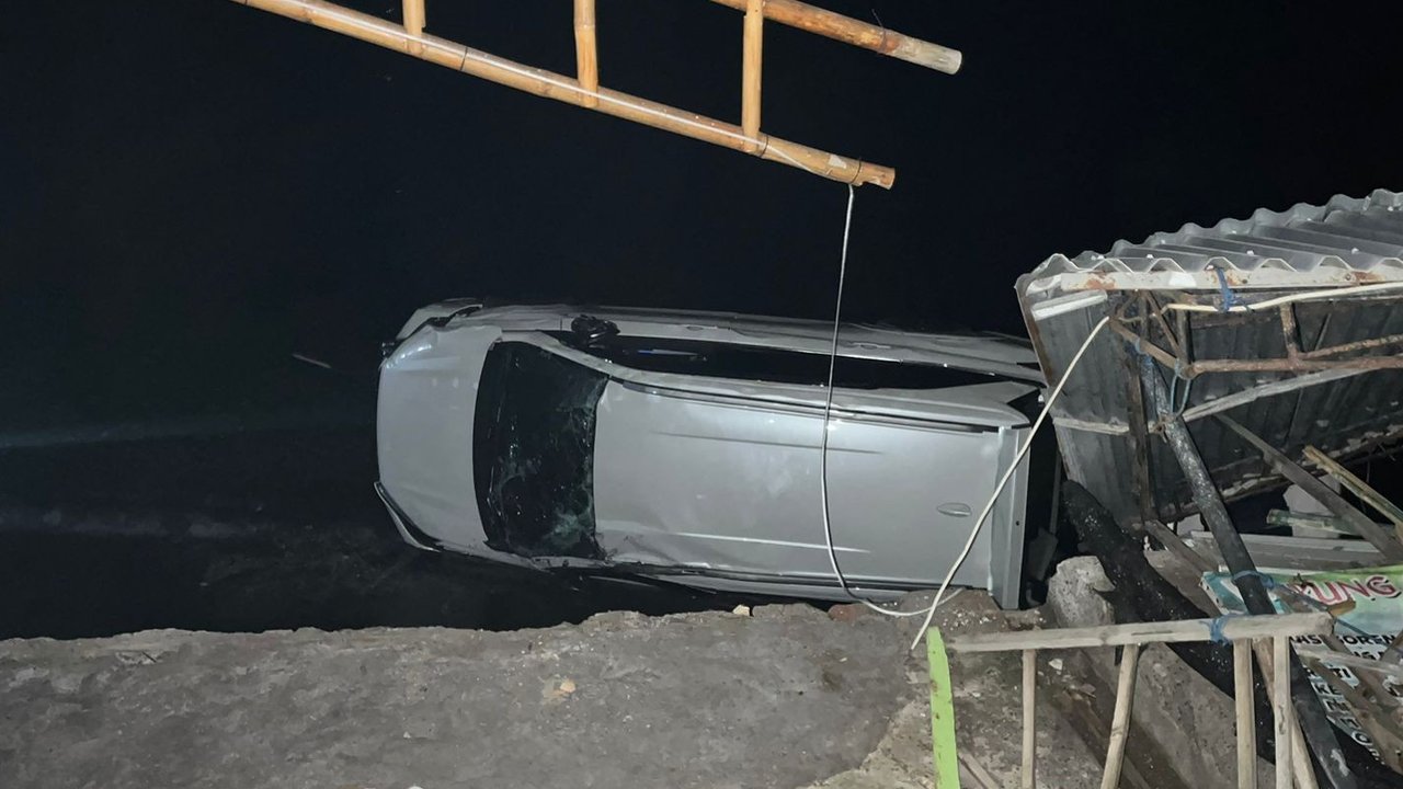 Baru Beli Dua Hari, Mobil Tabrak Warung dan Nyemplung di Pantai Penimbangan