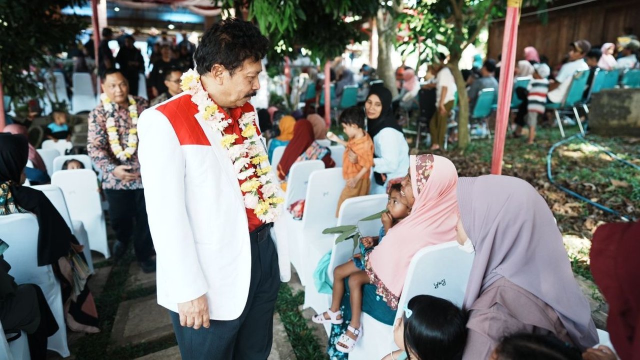 Mereka yang mayoritas ibu-ibu itu antusias akan menerima paket sembako makanan sehat dan bergizi dengan membawa anak-anak kecil mereka.