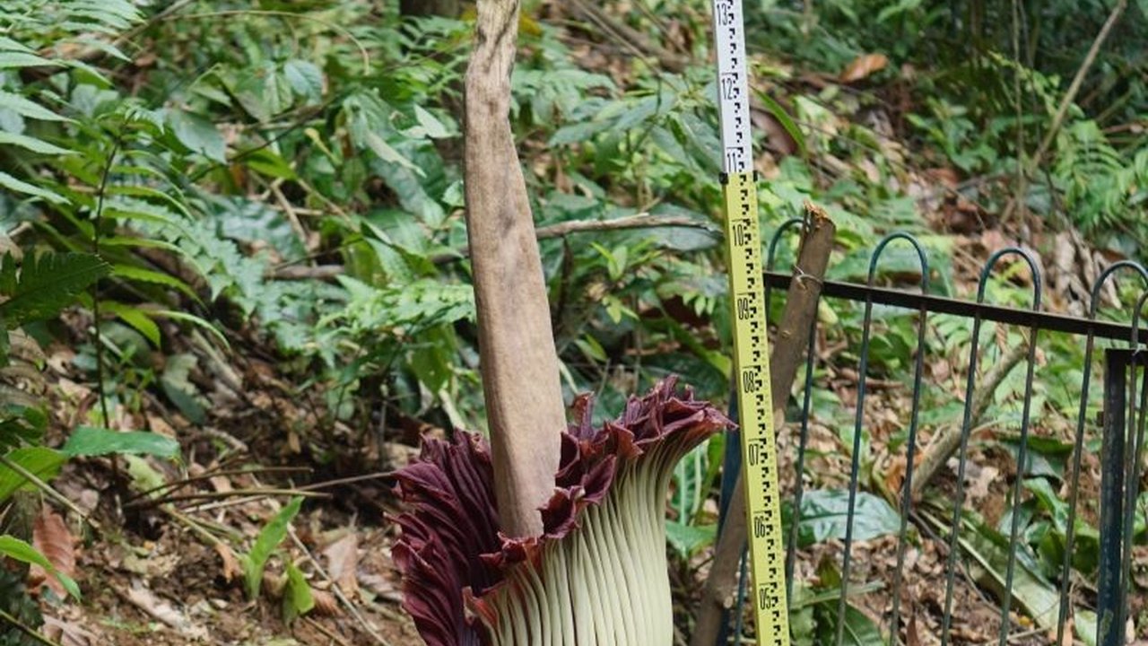 Setelah penantian 12 tahun, bunga bangkai raksasa Amorphophallus titanum akhirnya mekar sempurna di Kebun Raya Bogor, memukau pengunjung dengan keunikan dan ukurannya yang masif. Jangan lewatkan fenomena langka ini!