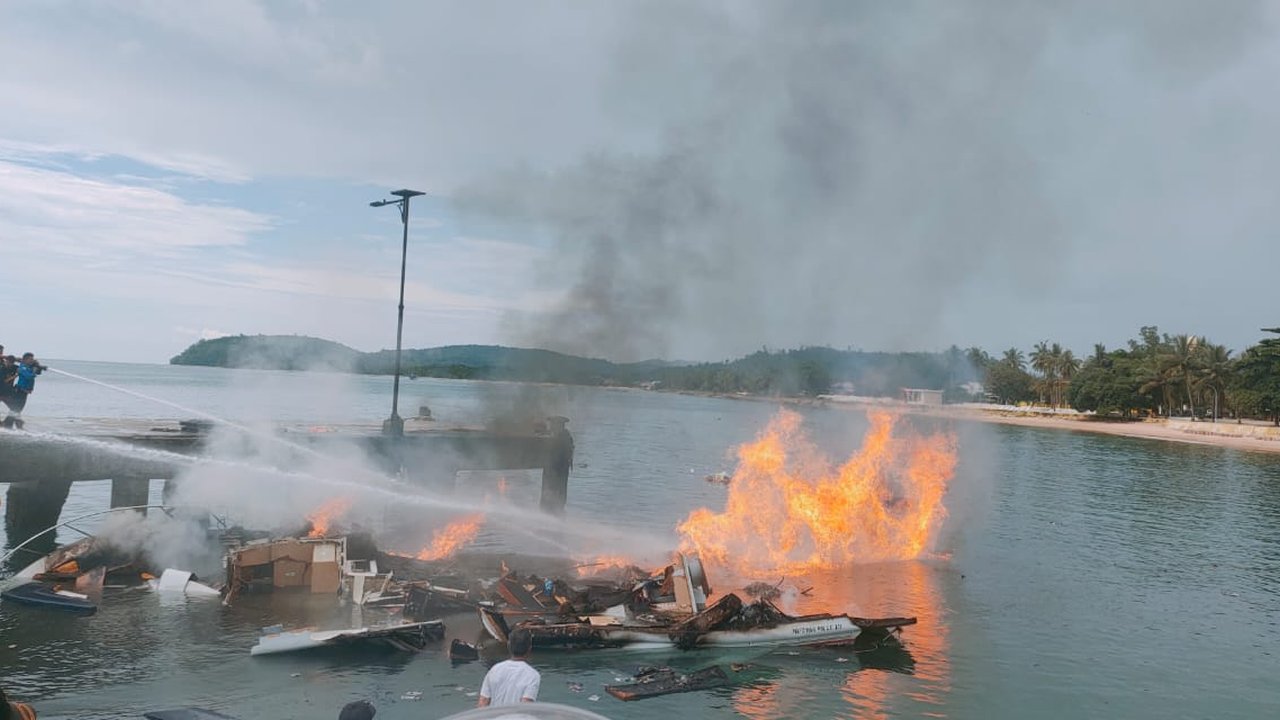 Totok mengatakan, rombongan dari Wakapolres turun dari speedboat dan menuju ke pelabuhan. Namun, selang 5 menit kemudian terjadi ledakan disertai kobaran api. Dengan cepat api melumat habis seluruh bodi speedboat.