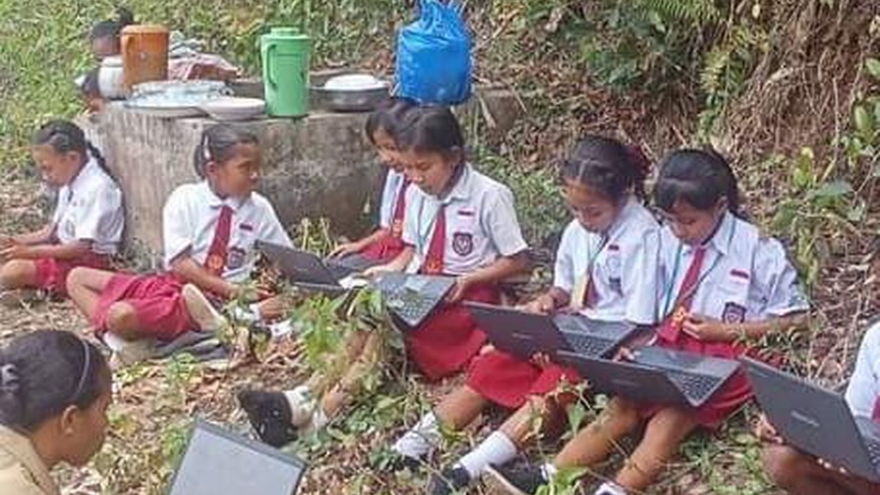 Demi dapat Sinyal, Siswa SD Rela Kerjakan Ujian di Hutan