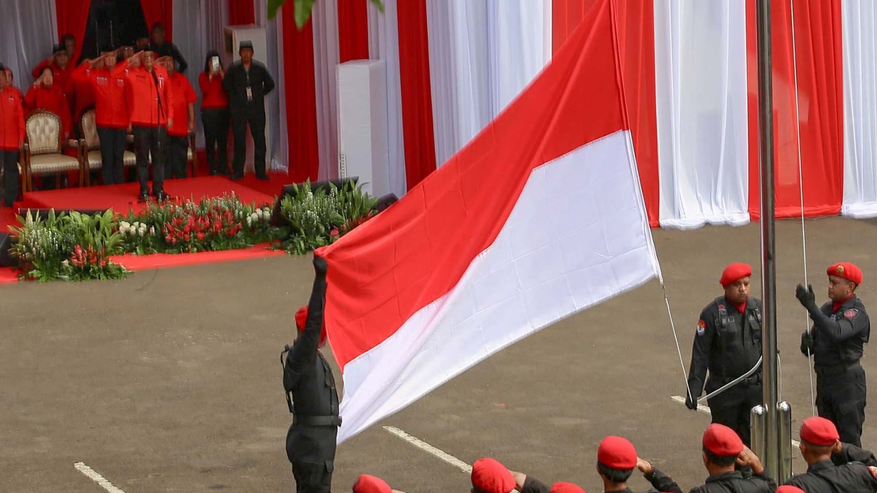 PDIP gelar upacara Hari Lahir Pancasila di Halaman Parkir Masjid At Taufiq, Lenteng Agung Jakarta Selatan, Minggu (01/06/2025). Liputan6.com/ Hermann Zakharia