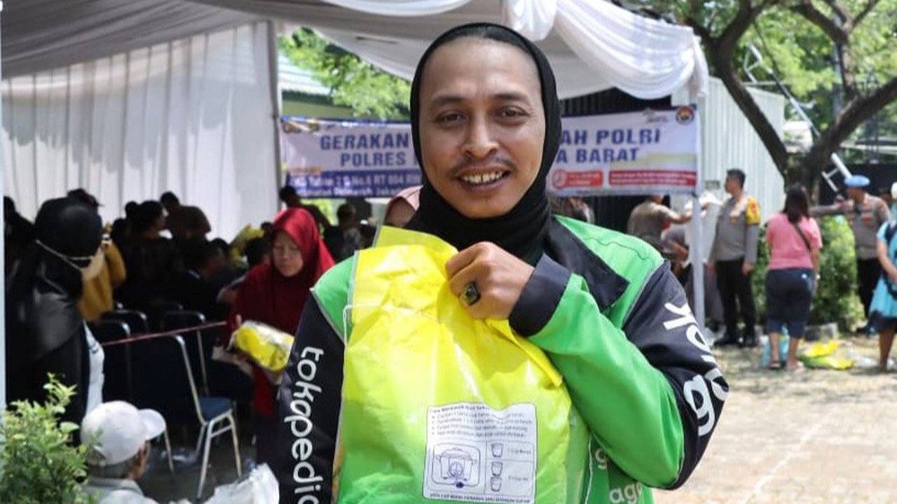 Polri menggelar Gerakan Pangan Murah dan Jumat Berkah di Polres Metro Jakarta Barat, Jumat (12/9/2025). Ribuan warga memadati lokasi untuk membeli paket beras 5 kilogram dan minyak goreng 1 liter seharga Rp50 ribu. Dalam hitungan jam, 20 ton beras dan 4.000 liter minyak goreng langsung ludes.