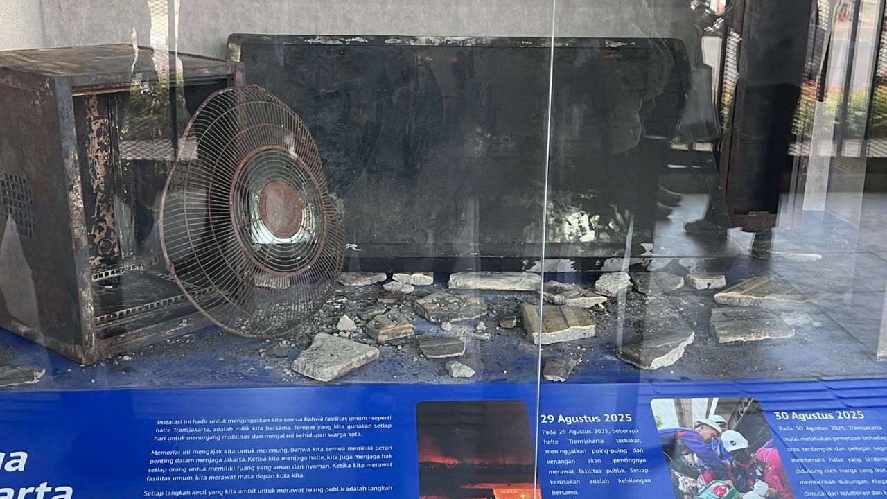 Bagi pengguna setia Transjakarta, kehadiran etalase berisi puing kebakaran membangkitkan perasaan campur aduk.