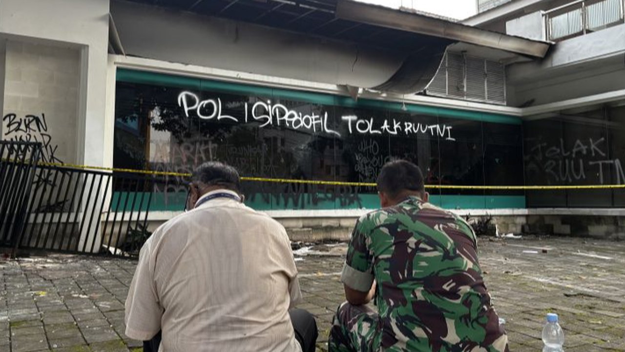 Kantor Hana Bank yang berada di Jalan Ir H Juanda (Dago), Kota Bandung dirusak dan dibakar massa yang menolak Revisi Undang-Undang (RUU) TNI di Gedung DPRD Jawa Barat.