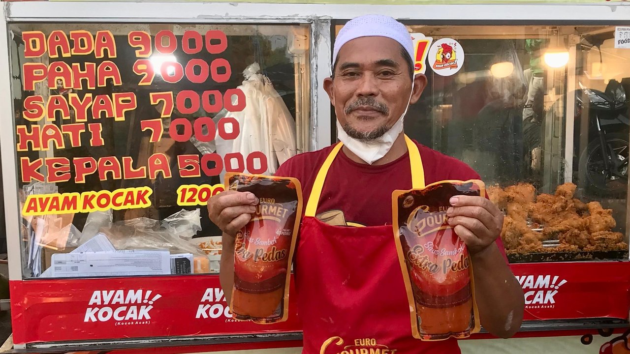 "Pakai sausnya Euro Gourmet yang extra pedas, rasanya pedes banget bos! Makin laris dagang ayam kocak, udah gitu antrinya jadi panjang ramai banget," ujar Pak Rasno selaku pemilik Ben Fried Chicken.