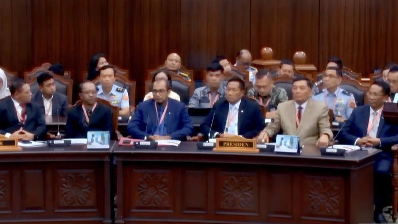 "Agenda persidangan pada pagi hari ini adalah untuk mendengar keterangan DPR dan Presiden. Oleh karena itu, untuk DPR yang akan memberikan keterangan adalah Utut Adianto dan Bob Hasan, kemudian dari Pemerintah adalah Supratman dan Sjafrie," ucap Ketua MK Suhartoyo membuka persidangan.