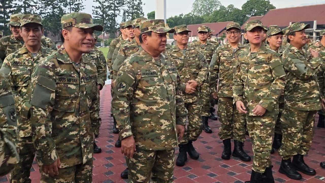 Presiden Prabowo Subianto menjadi orang pertama yang hadir di lapangan saat retreat di kawasan Akademi Militer, Magelang, Jawa Tengah. Acara retreat hari pertama dimulai pukul 04.00 WIB dan seluruh peserta memakai seragam Komponen Cadangan (Komcad).