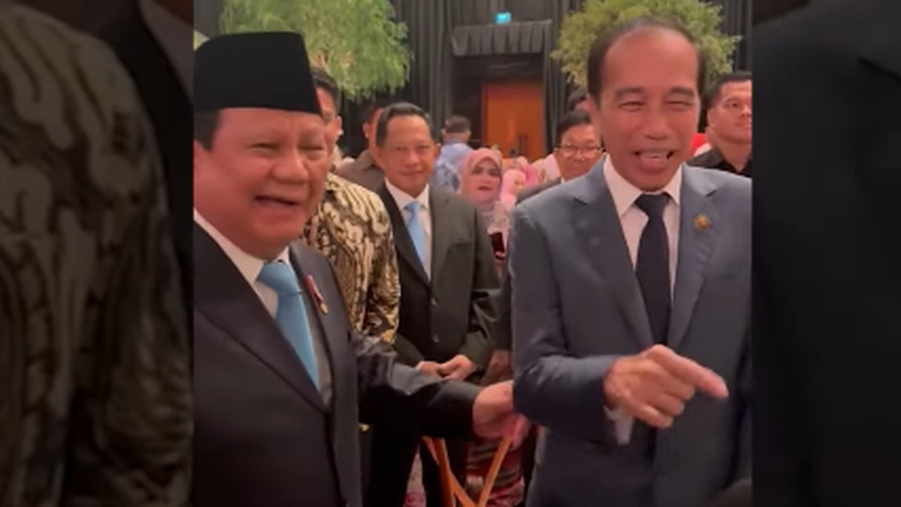 Sebuah video memperlihatkan momen kehangatan Presiden Prabowo Subianto, Presiden ke-7 Joko Widodo (Jokowi) dan Presiden ke-6 Susilo Bambang Yudhoyono (SBY) saat menghadiri acara pernikahan. Video itu menjadi viral karena dibumbuo candaan ‘cawe-cawe'.