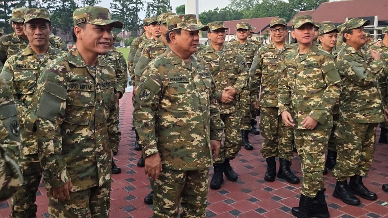 Anggota kabinet Merah Putih memakai baju loreng-loreng seragam Komponen Cadangan (Komcad).