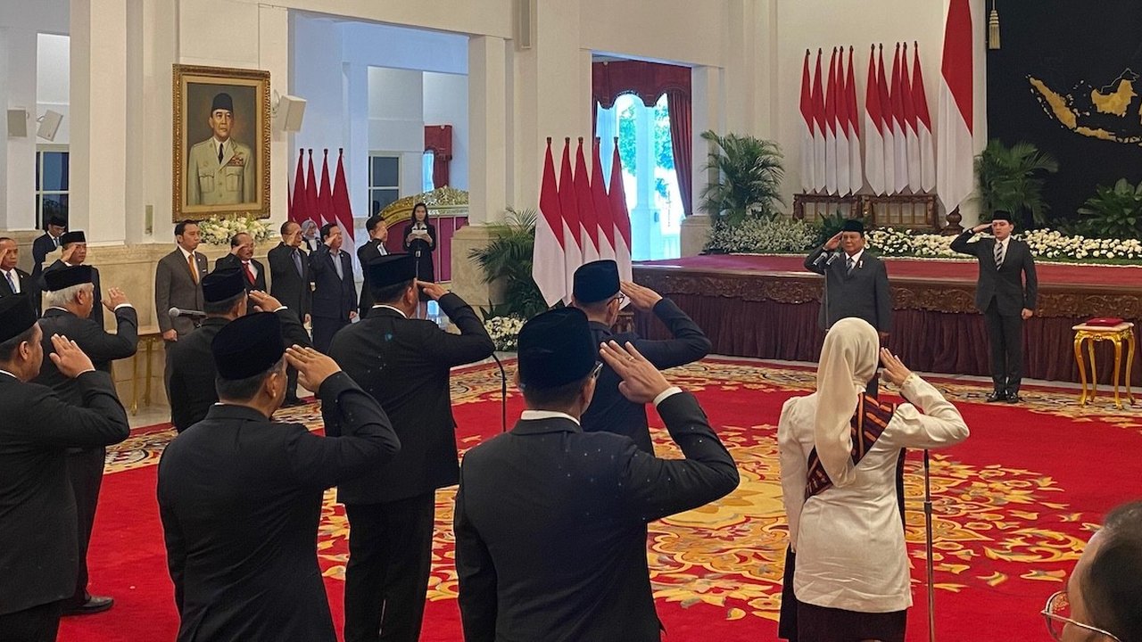 Wakil Ketua dan Anggota Dewan Ekonomi Nasional mengucapkan sumpah jabatan di hadapan Prabowo.