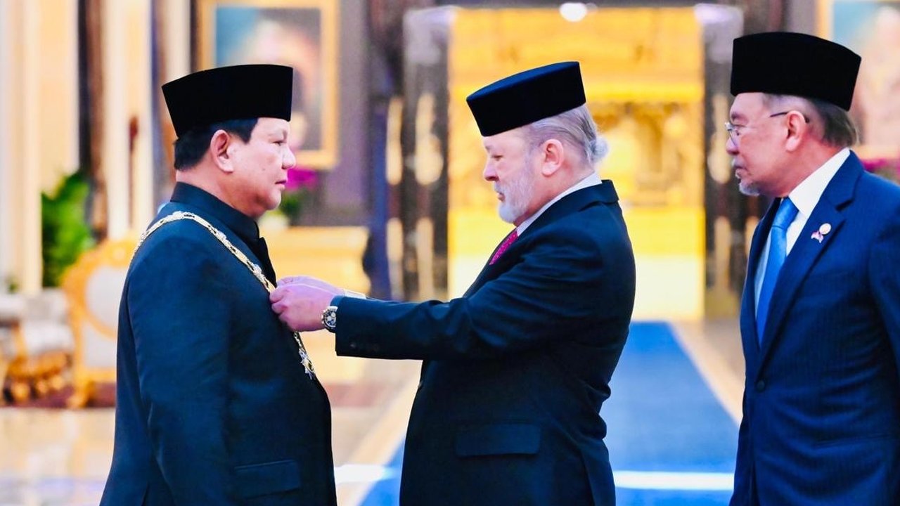 Presiden Prabowo Subianto menerima penganugerahan Darjah Kerabat Johor Yang Amat Dihormati Pangkat Pertama (D.K I Johor) dalam kunjungan kenegaraan ke Malaysia pada Senin, (27/1).