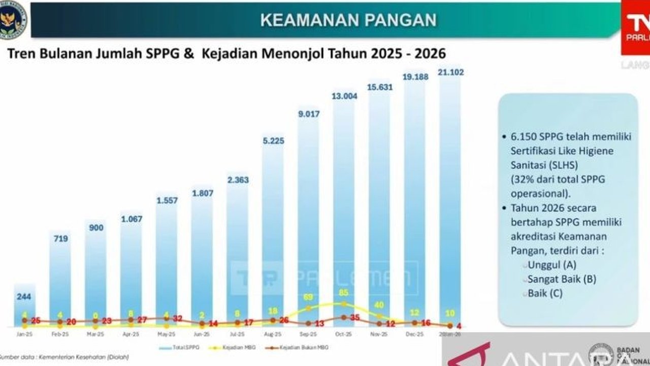 Hingga Selasa, Indonesia memiliki 21.102 SPPG yang beroperasi secara nasional. Unit-unit ini melayani sekitar 59,86 juta penerima manfaat. Angka ini menunjukkan skala besar dan jangkauan luas dari program tersebut.