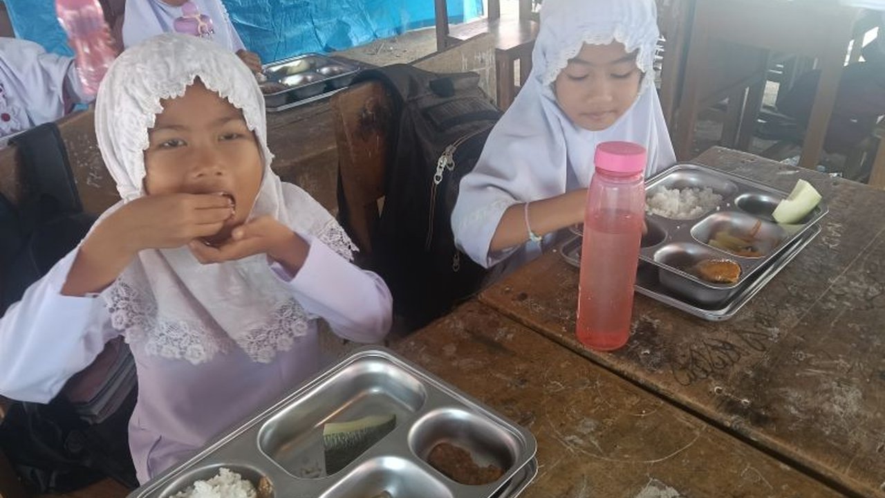 Sejak Senin (19/1), para siswa ini telah rutin menerima hidangan bergizi setiap pukul 09.00 WIB. Menu makanan yang bervariasi setiap hari membuat mereka senang dan bersemangat menjalani kegiatan belajar mengajar di tengah keterbatasan.