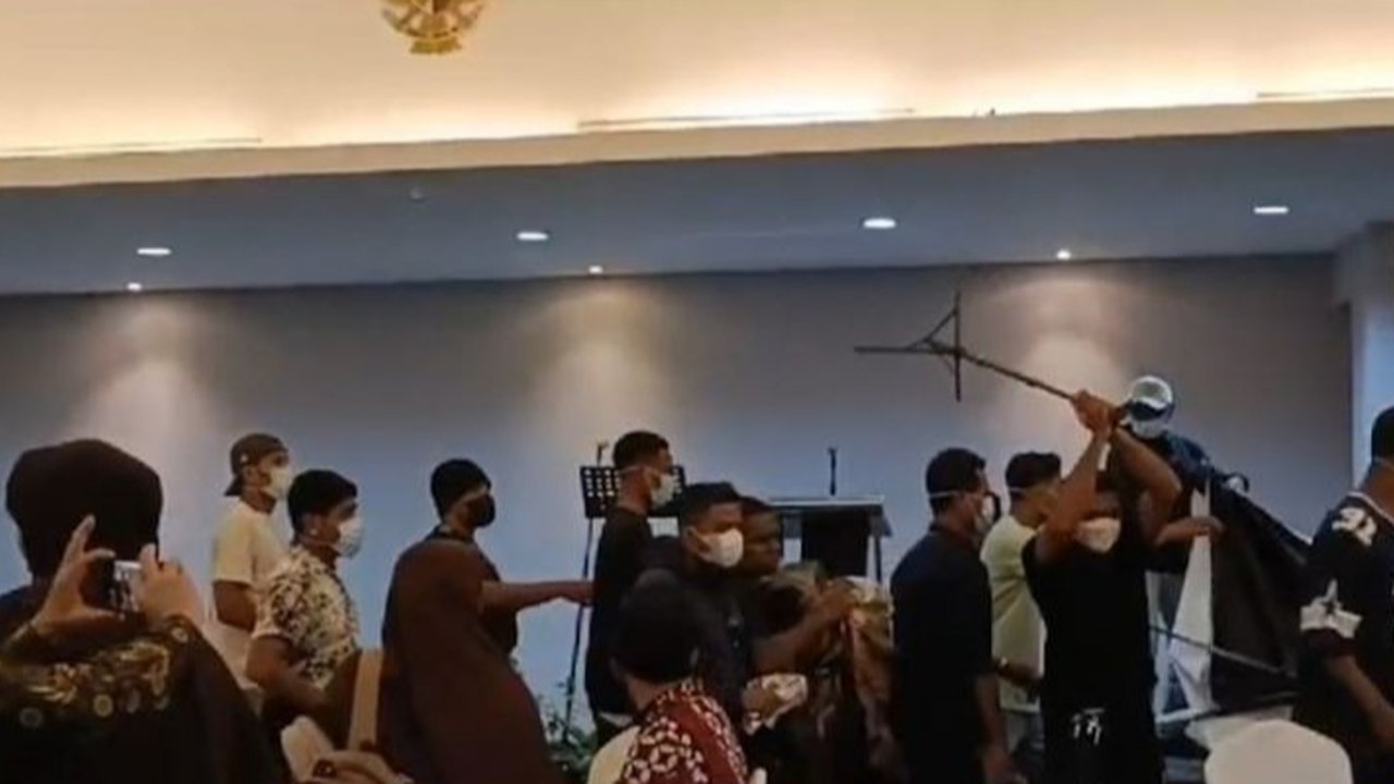 Kemudian tiba-tiba ada beberapa orang massa yang menyusup lewat pintu karyawan dan ada beberapa yang sudah berada di dalam hotel saat kegiatan berlangsung.