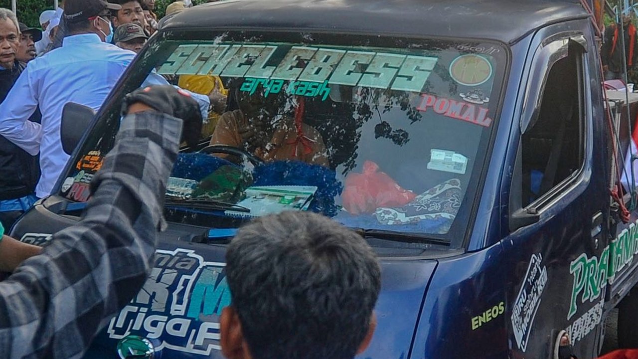 Situasi Depan KPU, Kapolres di Atas Mobil Komando Minta Pendemo Bubar