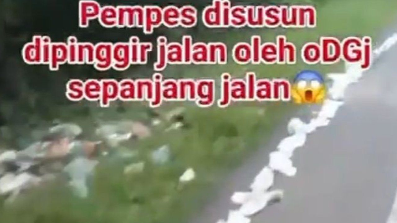 "Pempers disusun di pinggir jalan oleh ODGJ sepanjang jalan. Biar yang buang pempers sembarangan pada sadar," tulis keterangan dalam video.