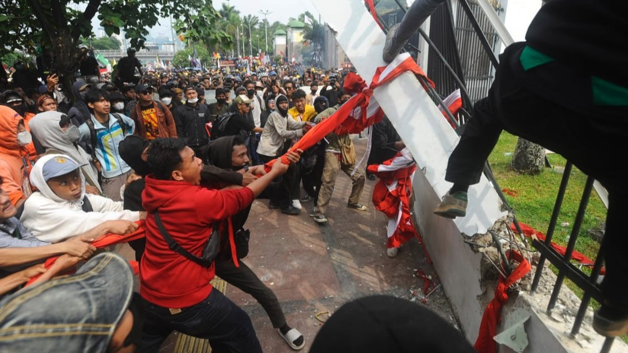 Hingga siang hari, demonstrasi makin memanas. Massa aksi akhirnya berhasil menjebol pagar Gedung DPR. Massa mencoba merangsek ke bagian dalam Kompleks Parlemen. Untuk menjaga situasi agar tetap kondusif, petugas pun berupaya membangun komunikasi dengan para demonstran tersebut.