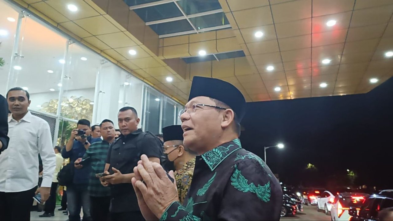 Plt Ketua Umum PPP Muhamad Mardiono menghadiri halalbihalal digelar Partai Golkar di DPP Partai Golkar, Jalan Anggrek Neli, Jakarta Barat, Senin (15/4) malam.