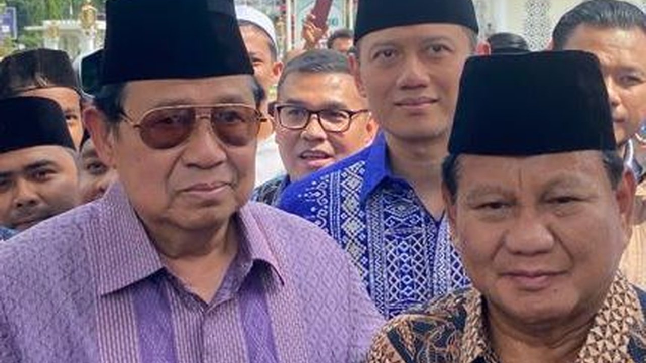 Capres nomor urut 2 Prabowo Subianto hadir di Aceh bersama Presiden keenam Susilo Bambang Yudhoyono (SBY) dan Ketua Umum Demokrar Agus Harimurti Yudhoyono (AHY).