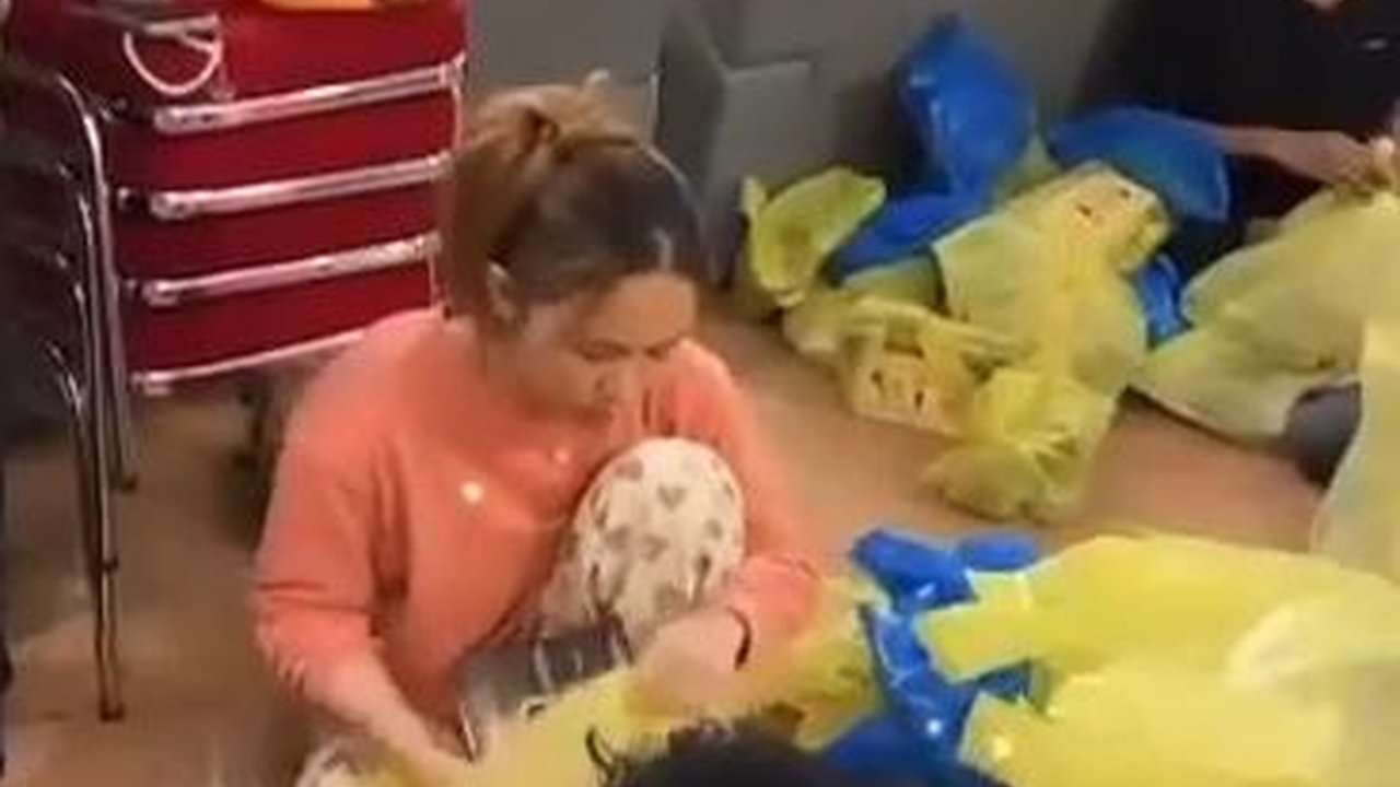Dalam video tersebut, terlihat 10 orang bahu membahu mengemas paket yang diduga berisi kain sarung ke dalam platik asoy berwarna kuning dan merah. Di bagian luar kemasan di tempel stiker wanita yang diduga caleg tersebut.