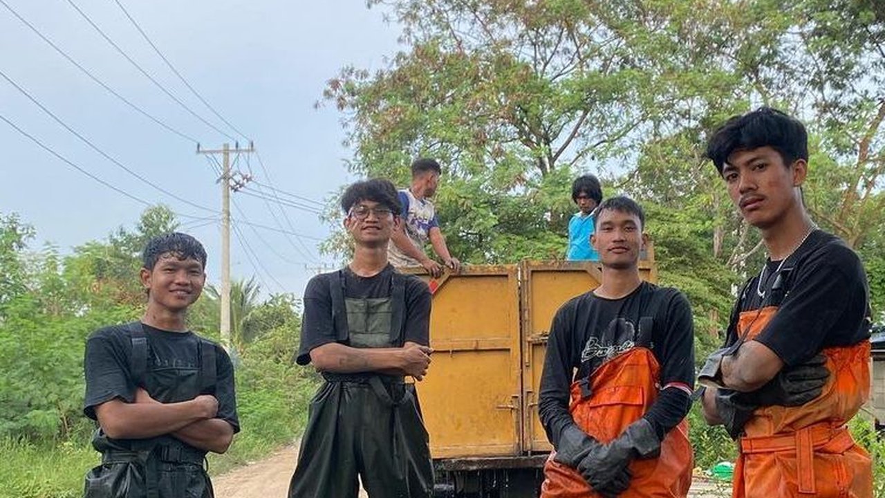 Terlihat dari video tersebut mereka bekerja sama dan berjibaku membersihkan tumpukan sampah di pinggir jalan. Nampak sekali banyak sampah-sampah plastik dan dedaunan kering.