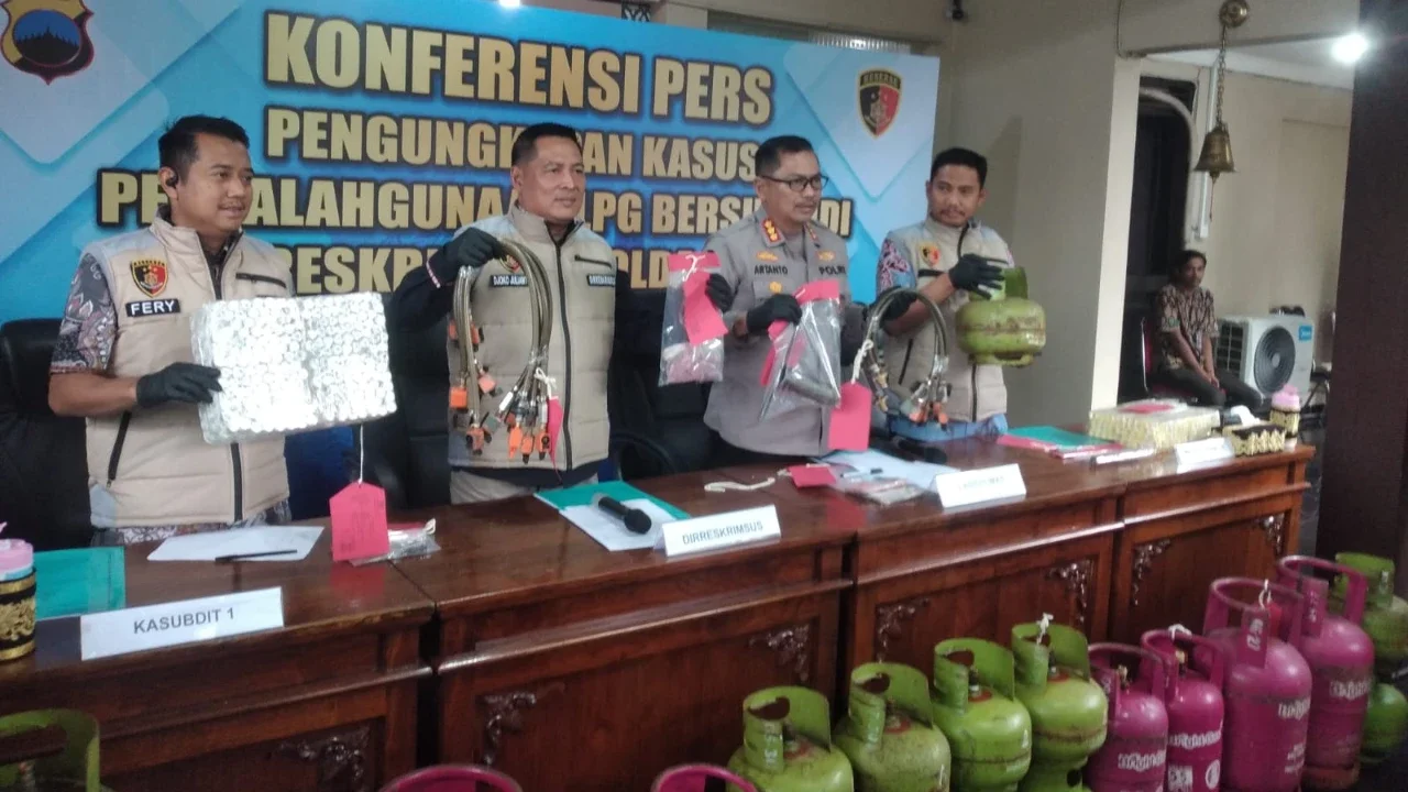 Para pelaku diduga mengoplos tabung LPG subsidi ukuran 3 kilogram ke tabung non-subsidi 12 kilogram dan 50 kilogram untuk meraup keuntungan besar.