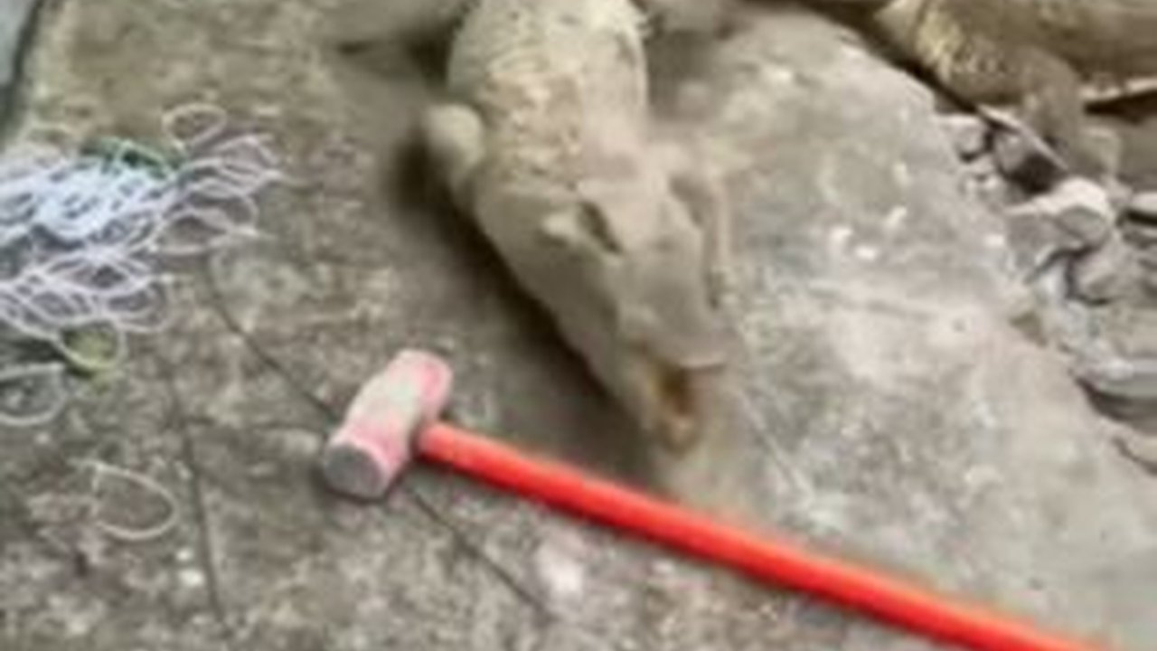 Kemunculan tiga buaya tersebut dari dalam tanah membuat beberapa orang petugas mengamankannya. Dalam tayangan yang dibagikan, petugas nampak mengunci salah satu ekor moncong buaya yang ada.