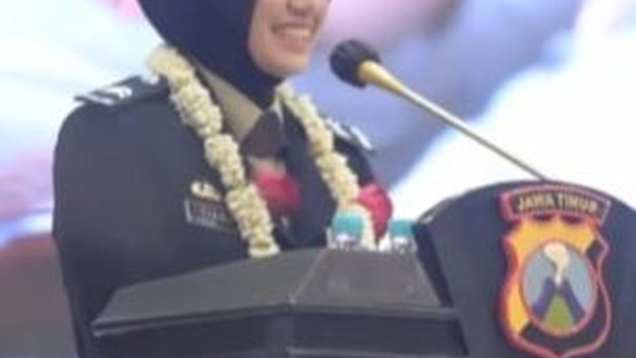 Polwan cantik itu juga sempat memberikan pidato di hadapan pejabat tinggi Polda Jatim dan sempat berinteraksi dengan Irjen Toni.