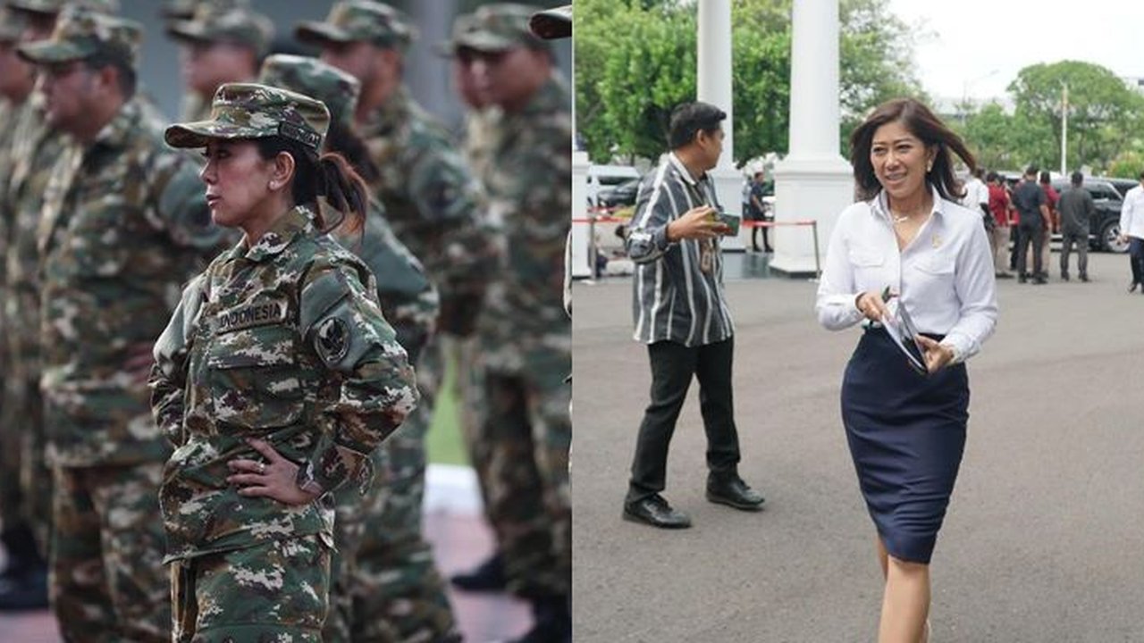 Dalam kesempatan itu, Meutya bersama jajaran menteri hingga utusan khusus presiden tampil berbeda dengan balutan seragam loreng.