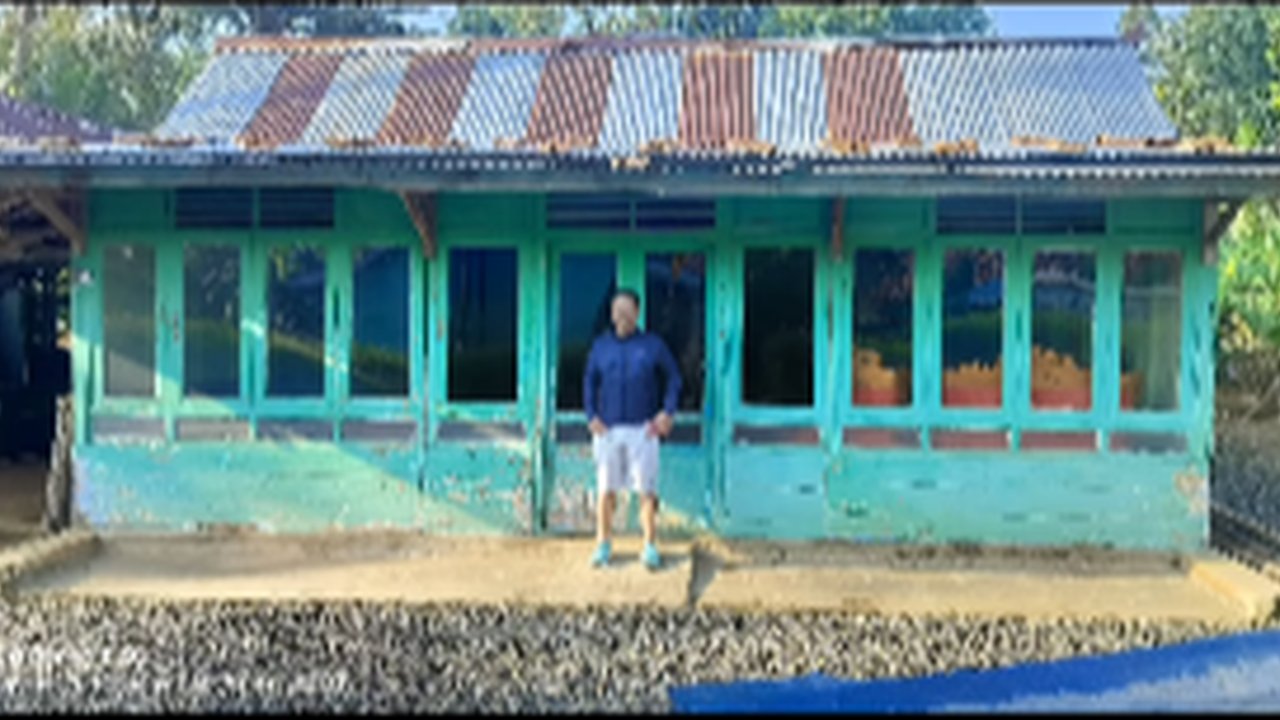 Dalam video, terlihat rumah masa kecil Wahyo itu bisa dibilang cukup sederhana dengan dinding dari kayu dan atap masih menggunakan seng.