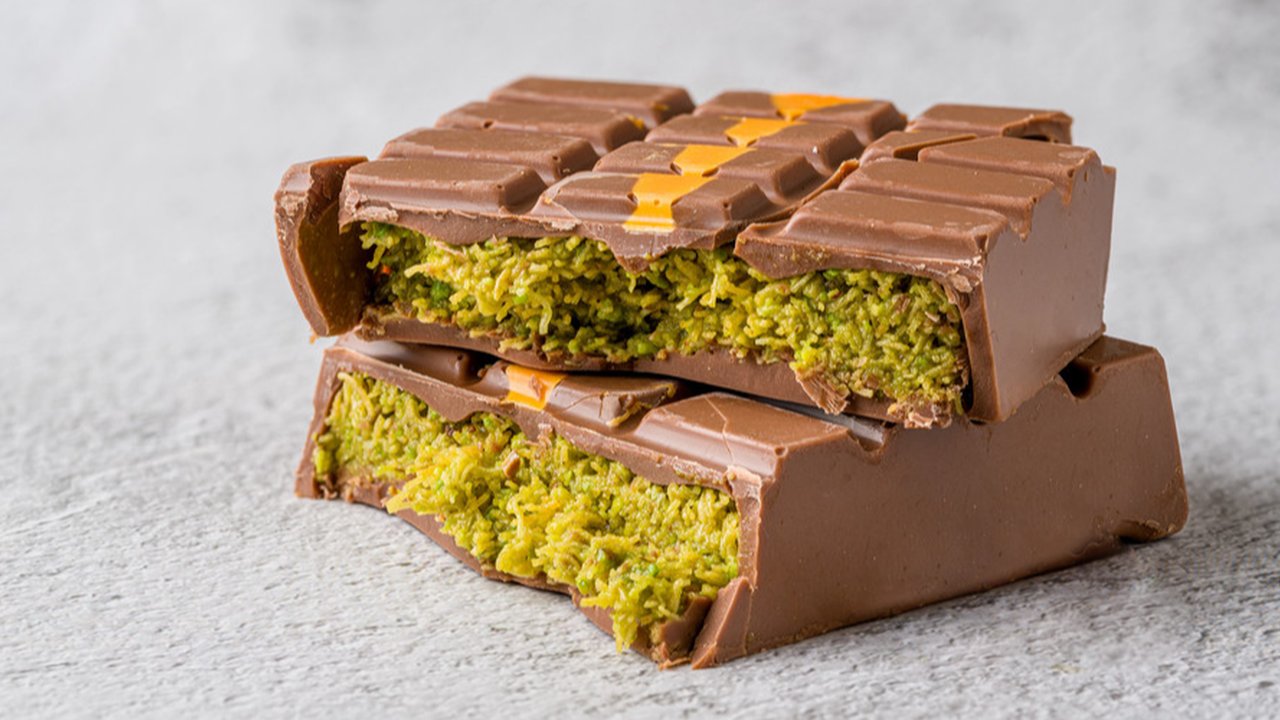 Cokelat ini terdiri dari krim pistachio, lapisan pastry renyah mirip baklava, dan cokelat susu, yang membuatnya sangat diminati.