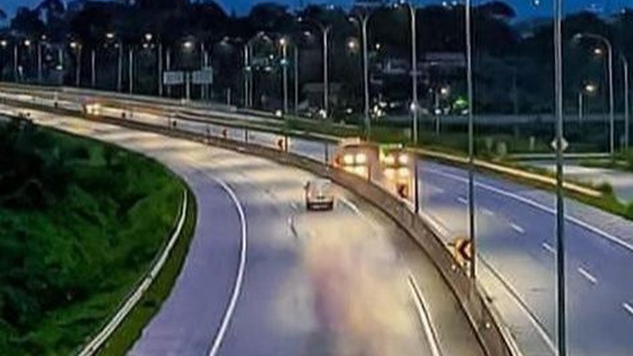 Terlihat di dalam video itu, ia berada di bahu jalan tol di depan gerbang tol Serpong 3.