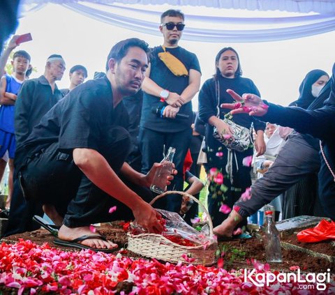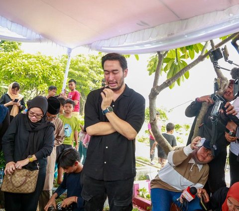 Tangis Jeje Govinda pecah saat prosesi pemakaman sang ibunda. Air matanya terbendung lagi saat liang lahad ibunya ditutupi oleh tanah. Tampak kesedihan mendalam terpancar jelas dari wajah suami Syahnaz Sadiqah tersebut.