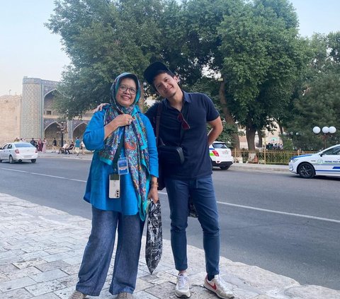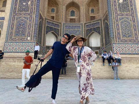 Potret Dimas Seto dengan sang ibunda saat berada di Uzbekistan. Keduanya mengabadikan foto saat berada di Bukhara, kota di Uzbekistan. Disana, Dimas Seto mengunjungi tempat-tempat bersejarah.