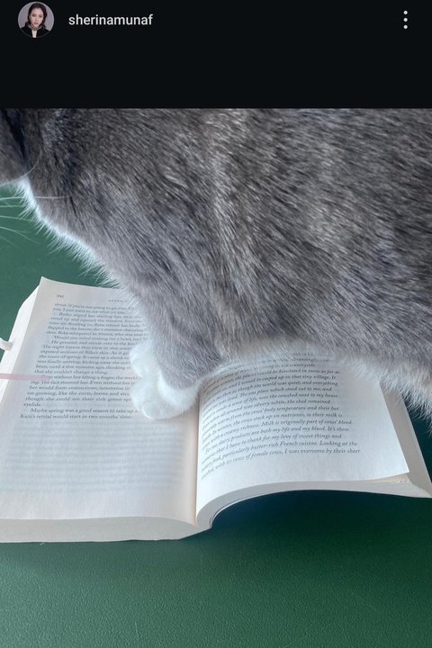 Sherina Munaf pernah membagikan momen bacanya, terlihat sangat menikmati aktivitas tersebut, meski diganggu oleh kucing kesayangannya.